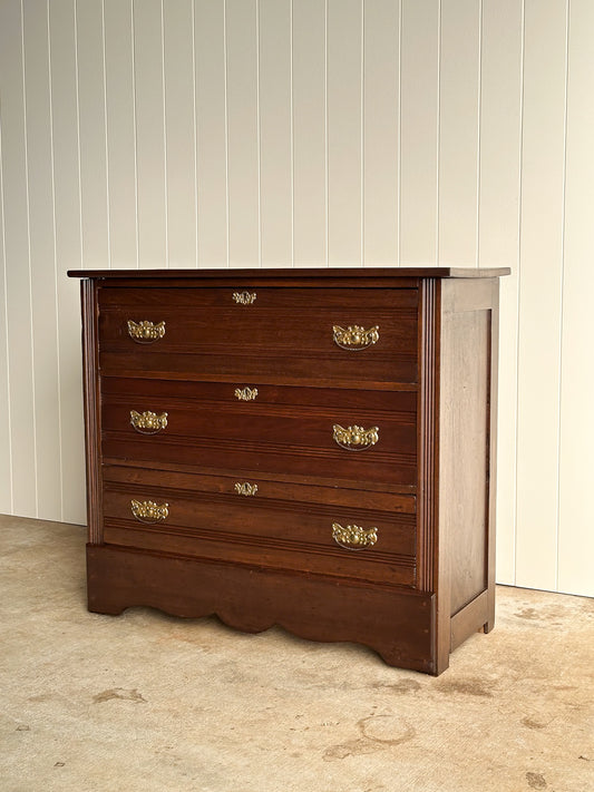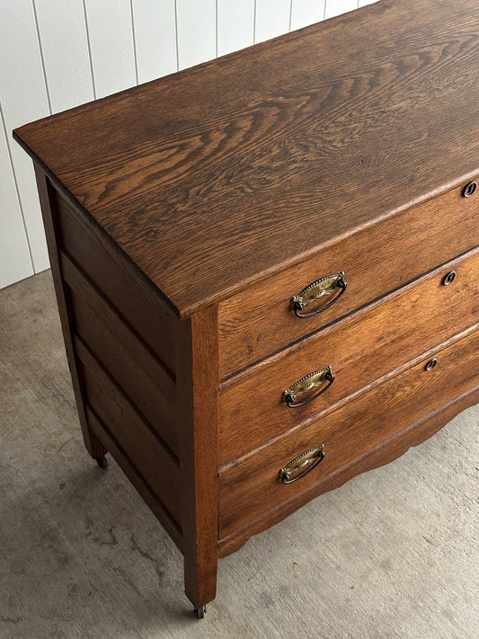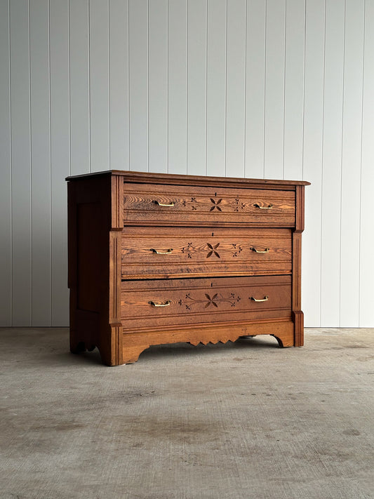 Antique Eastlake Solid Oak Three-Drawer Dresser