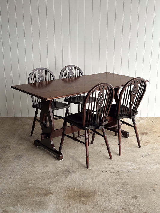 Antique English Wooden Trestle Dining Table, c. 1880–1910
