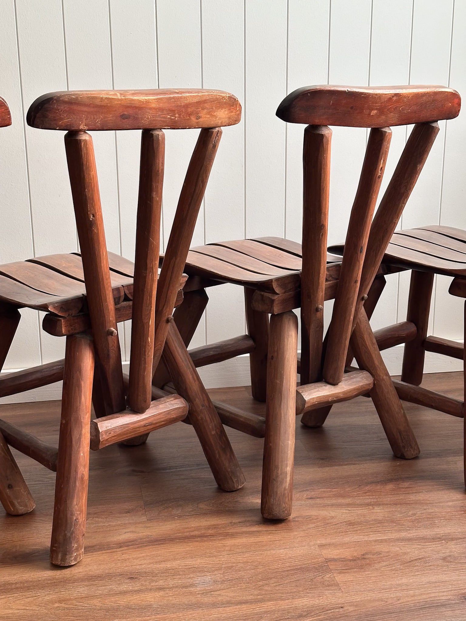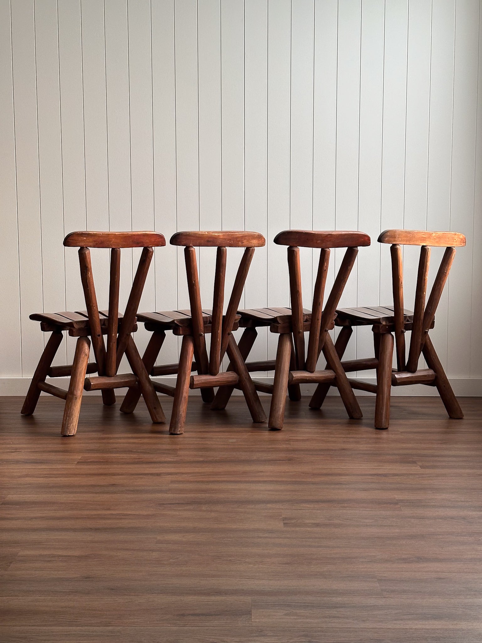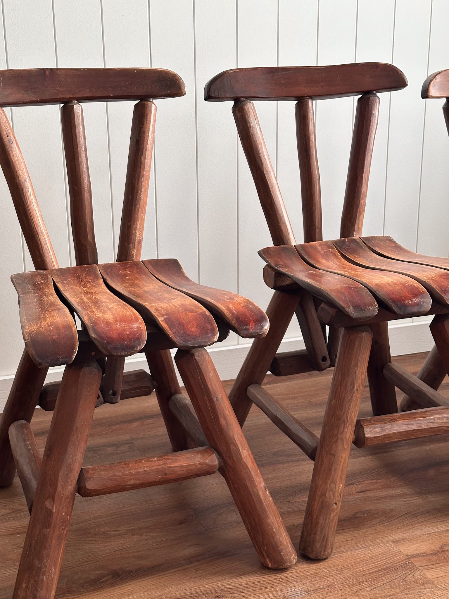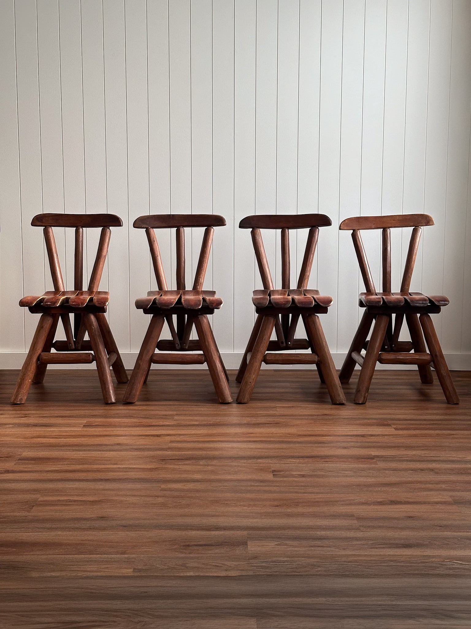 1960s Vintage Brutalist Wabi-Sabi Wood Dining Chairs, Set of Four