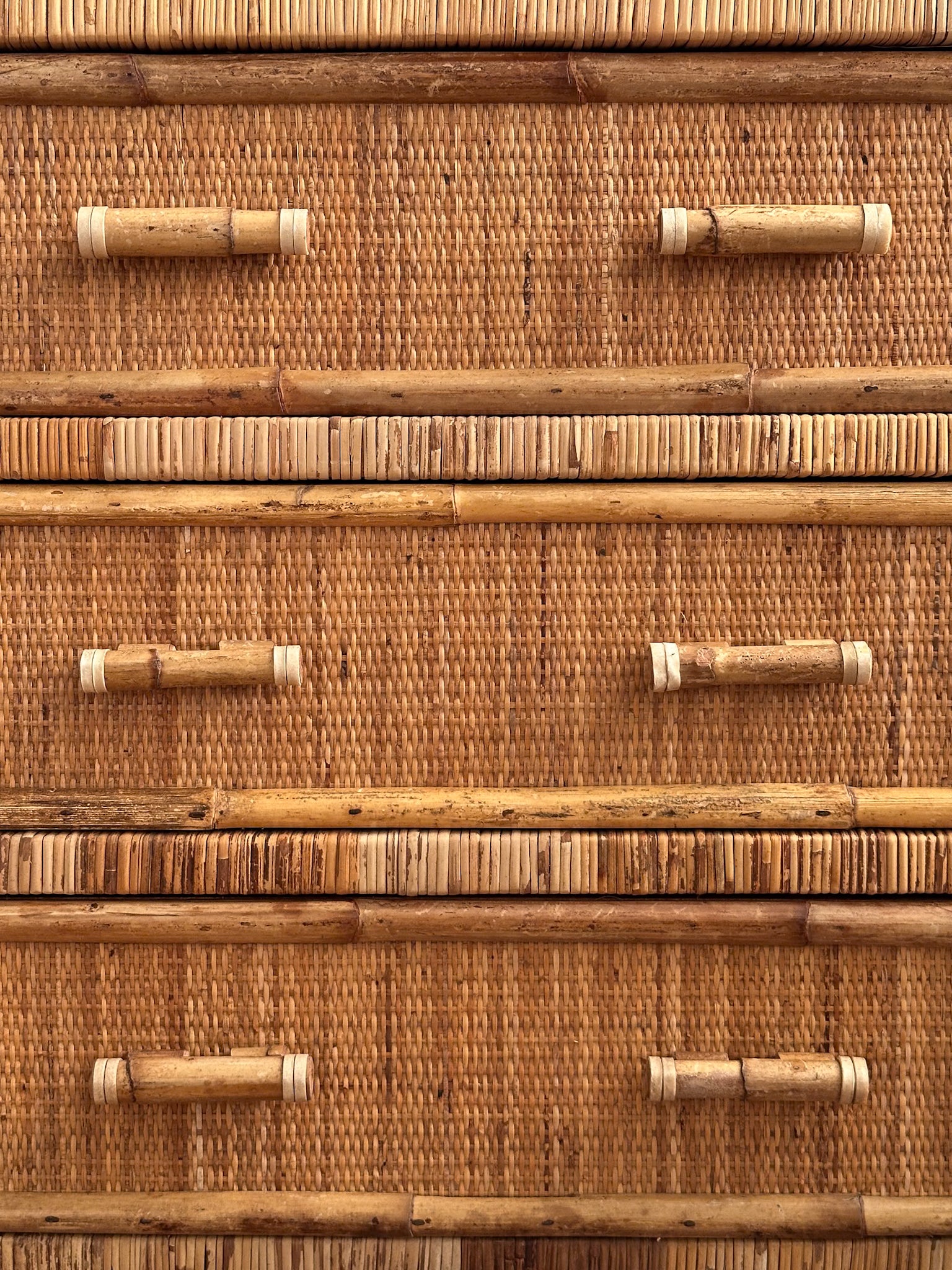 1970s Vintage Woven Rattan Chest of Drawers