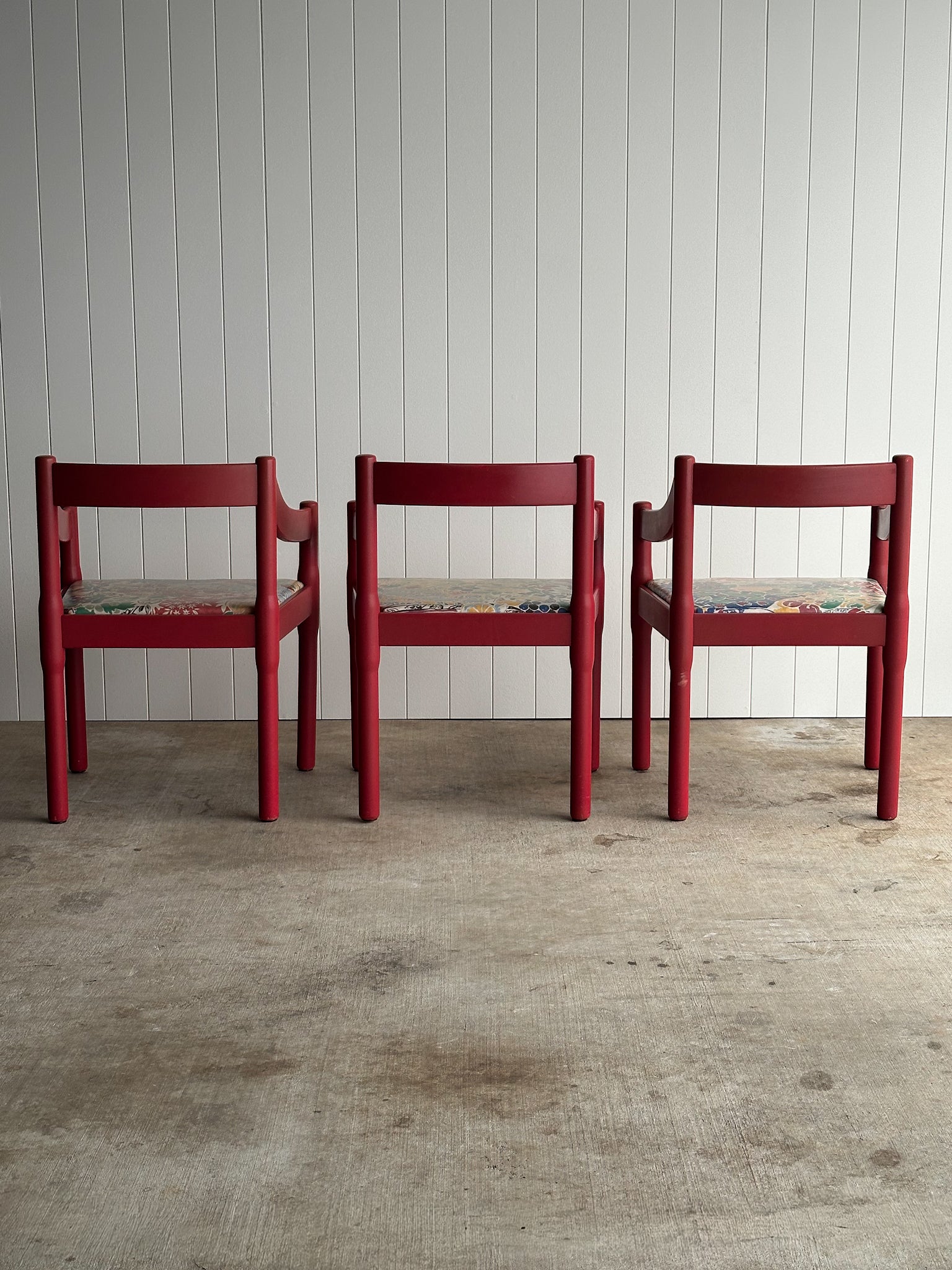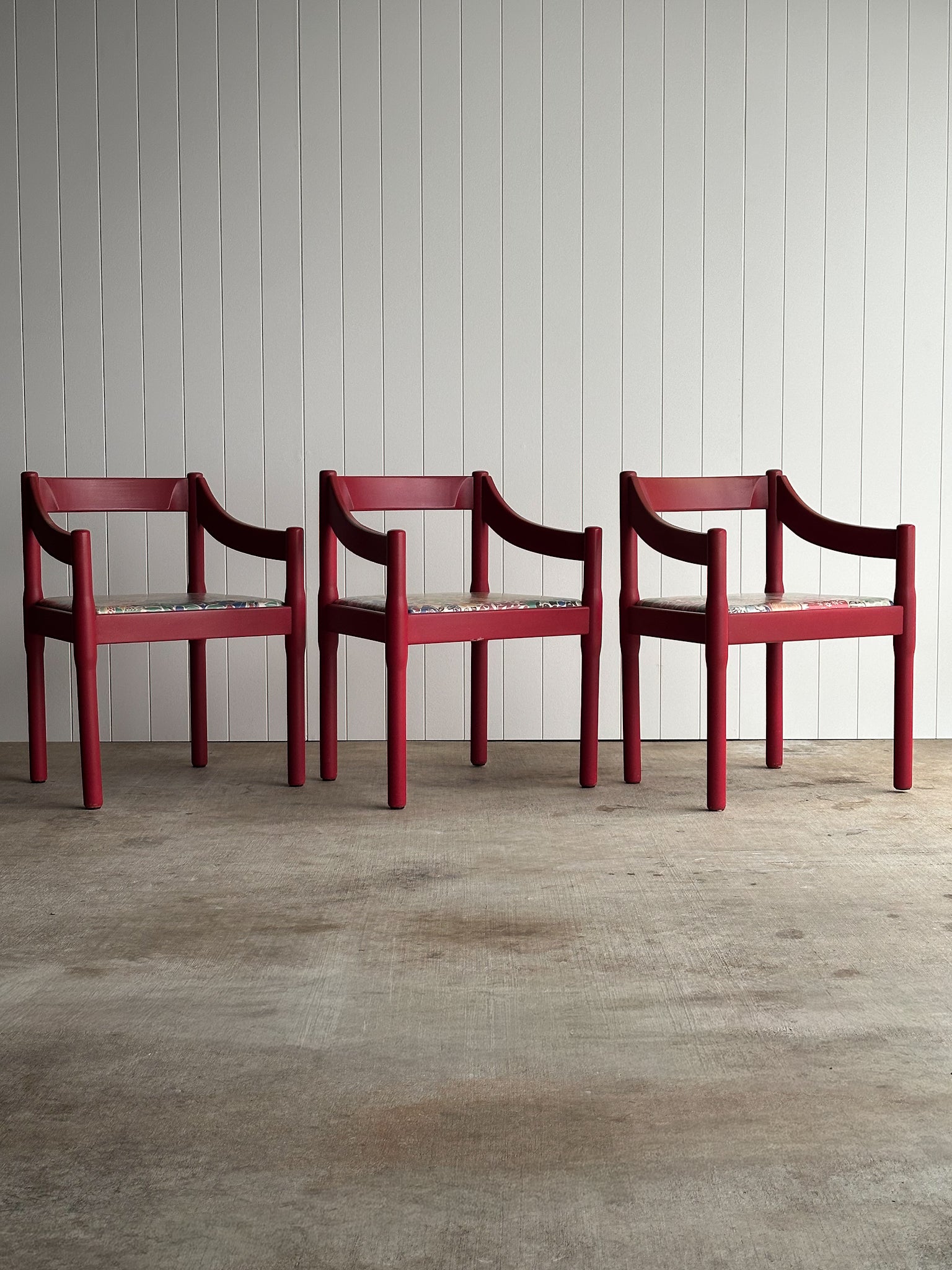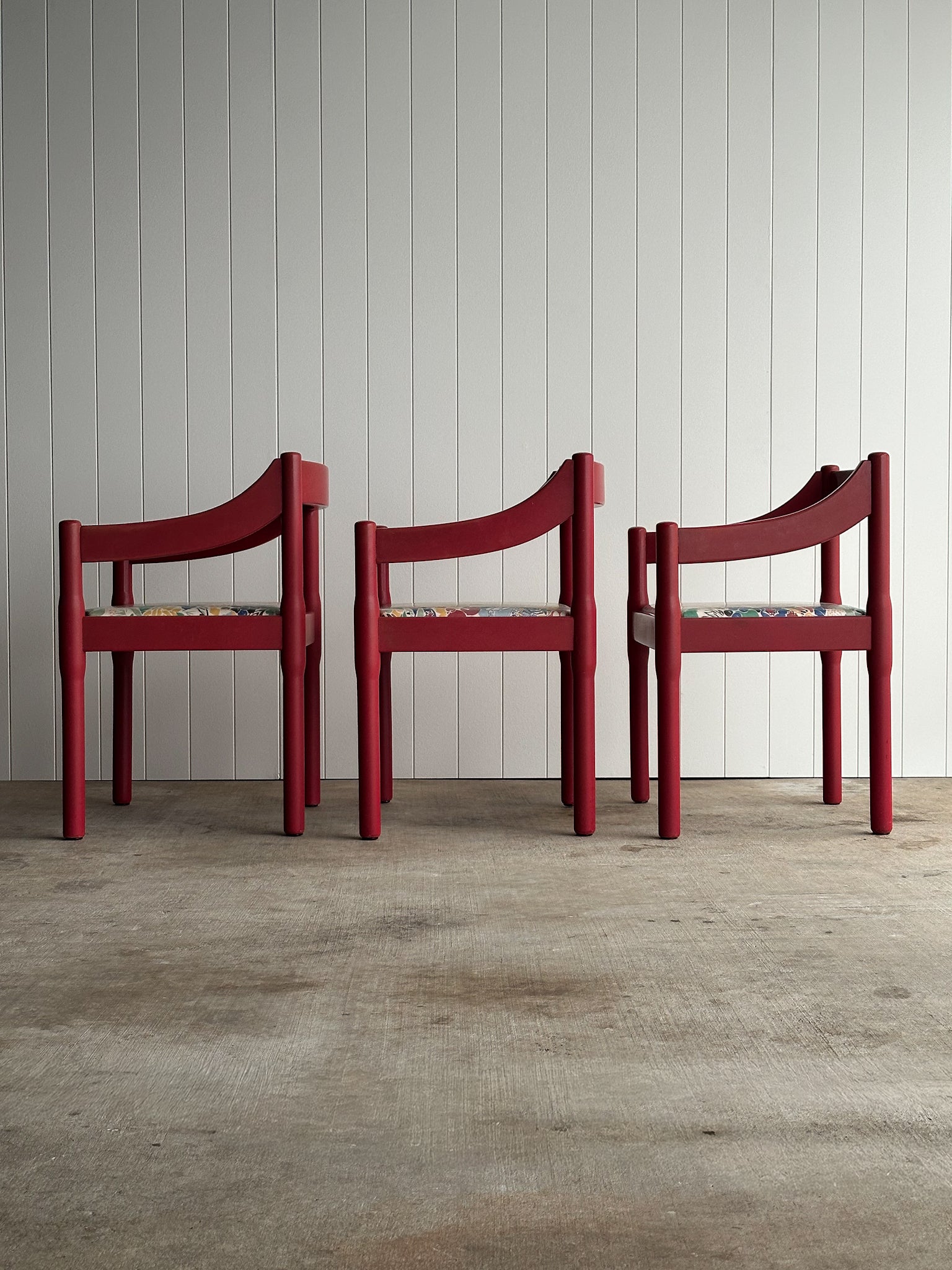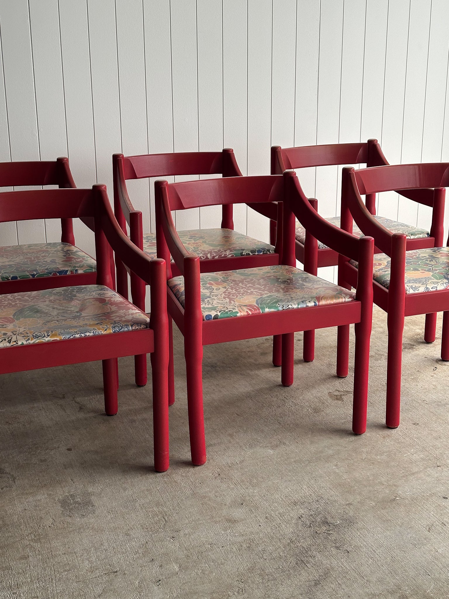 Set of Six Vintage Red Lacquered Dining Armchairs, Attributed to Vico Magistretti