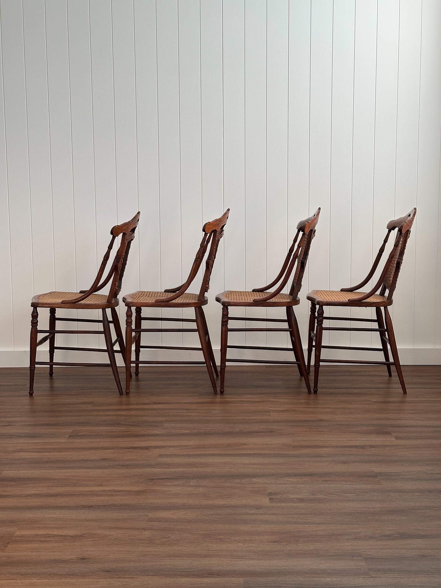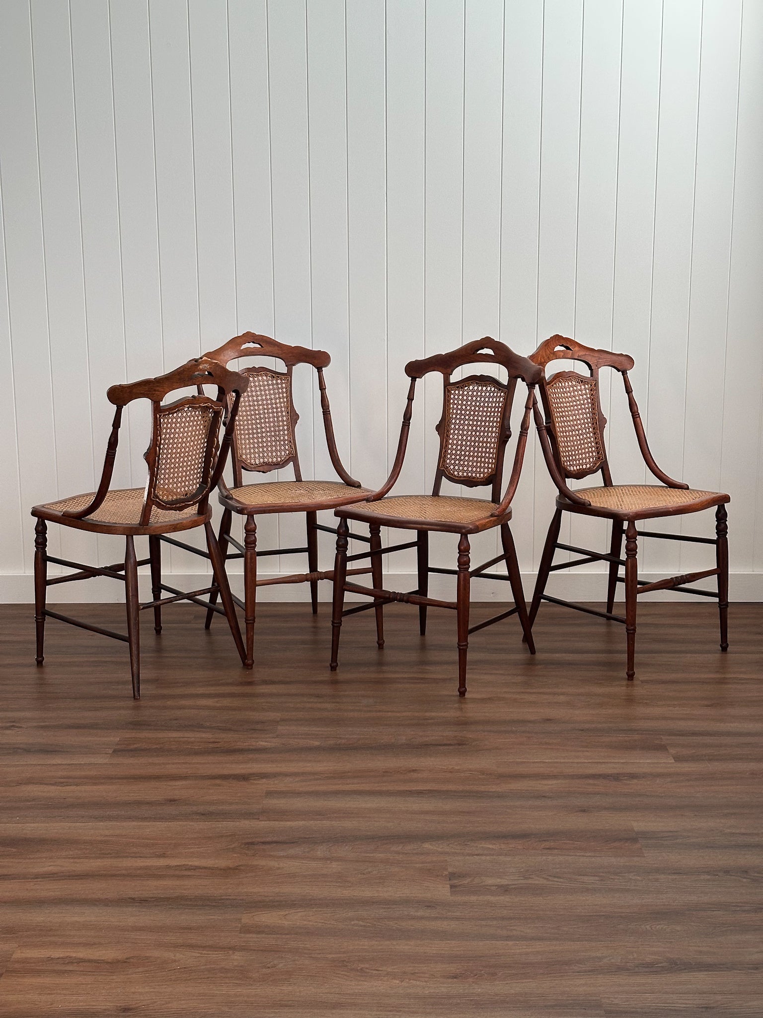 Victorian-Era Antique Cane & Wood Dining Chairs, Set of Four