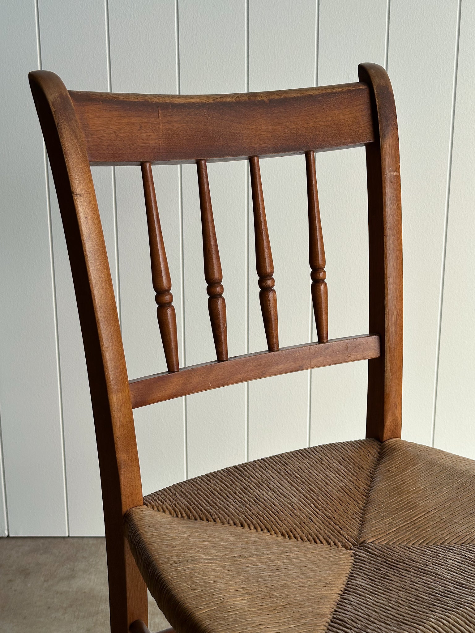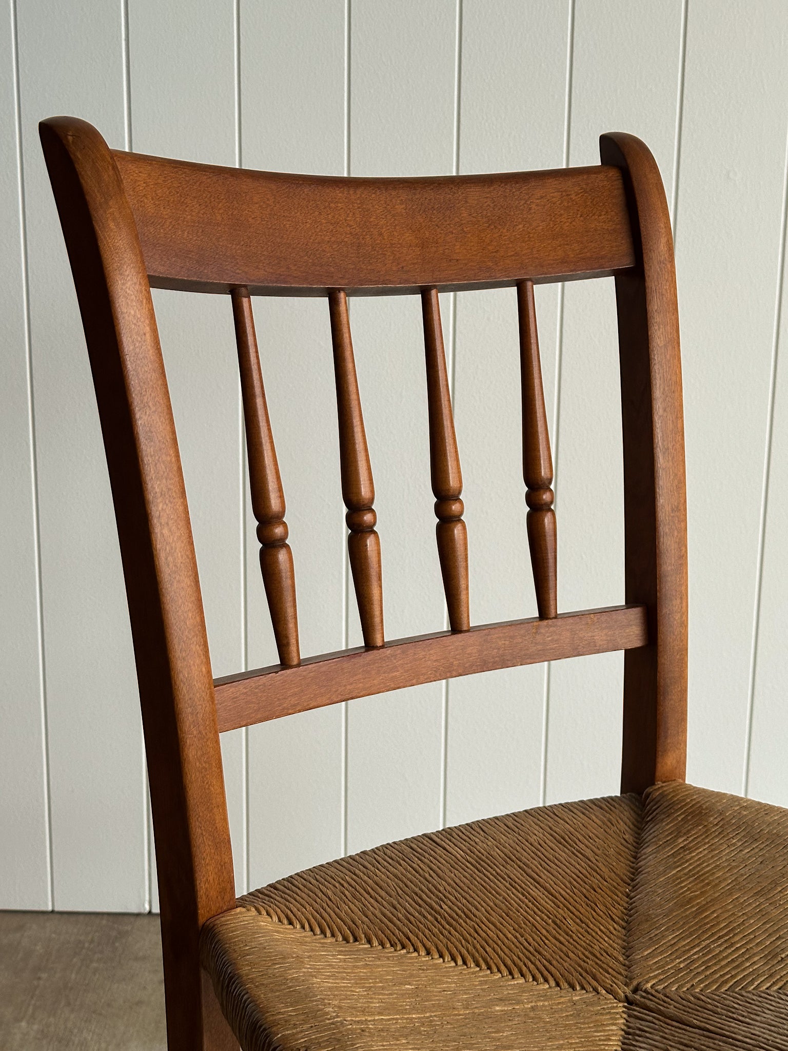 Vintage Maple Dining Chairs With Hand-Woven Rush Seats, Set of Six
